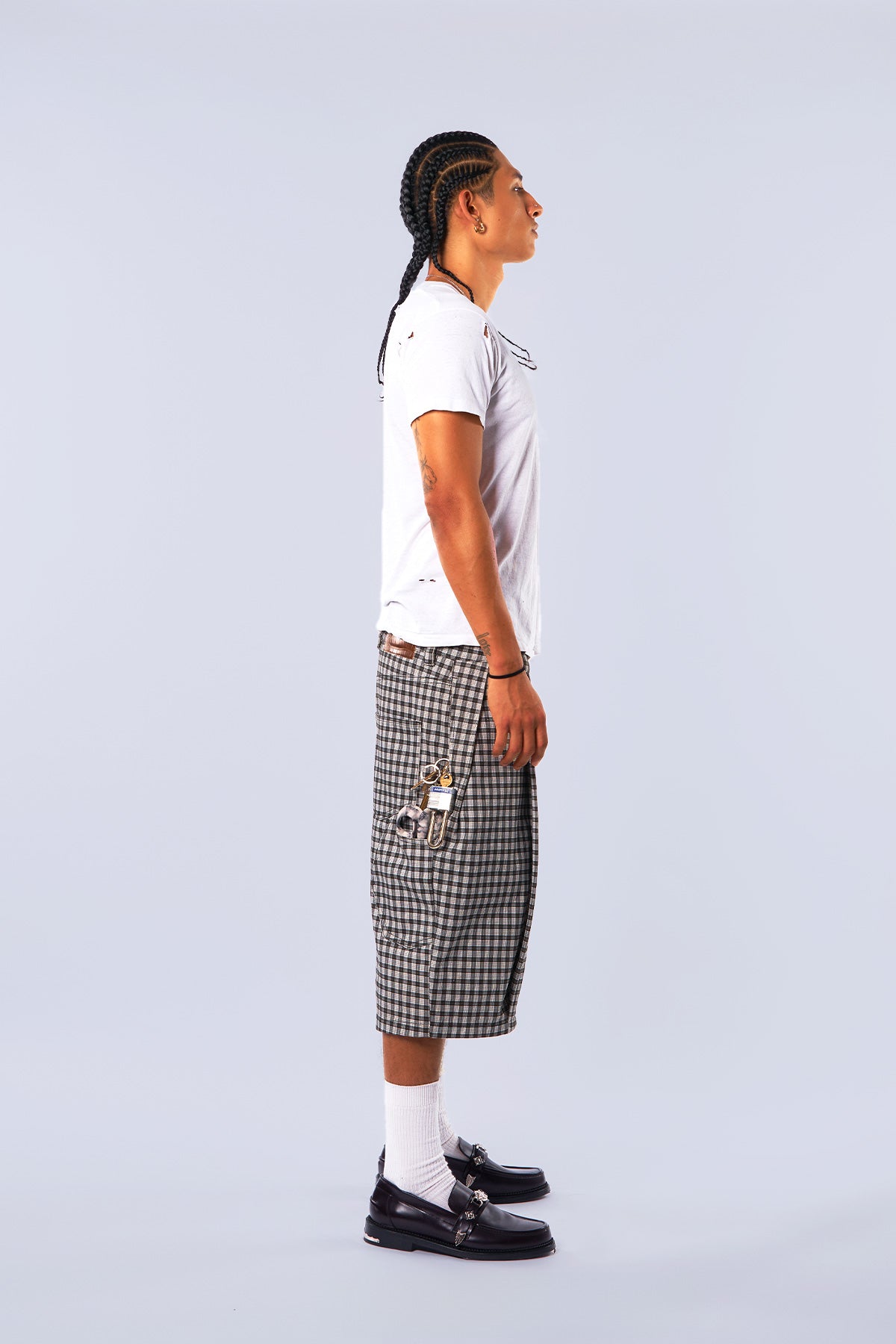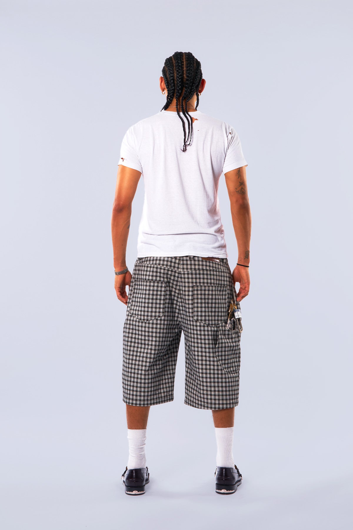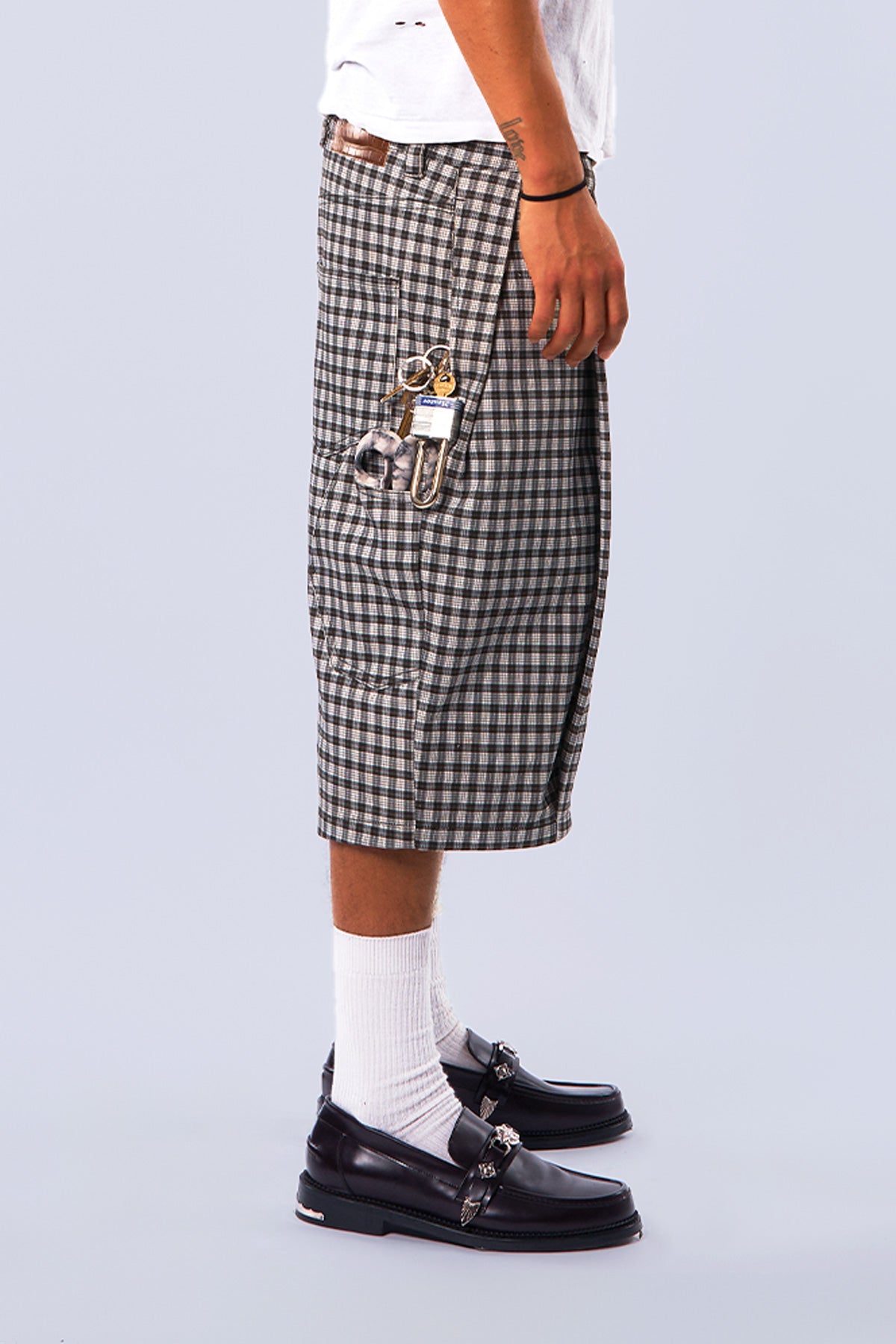 Midnight Canvas Pleated Plaid Denim Shorts