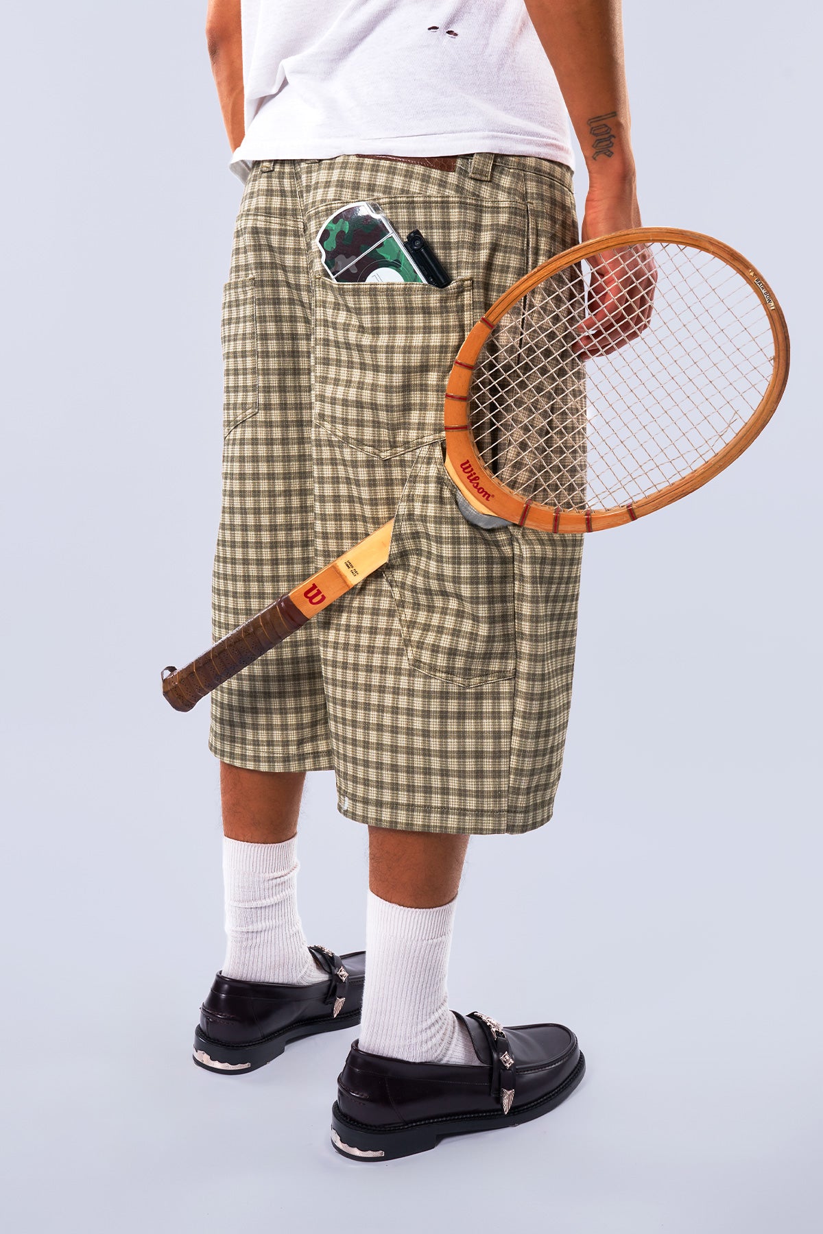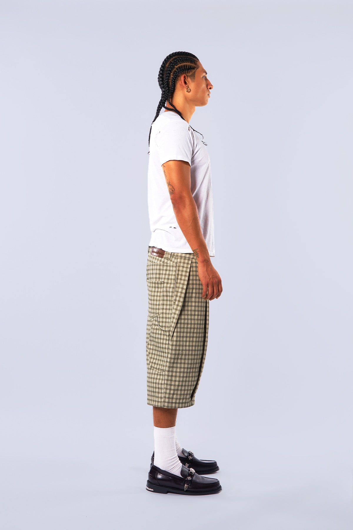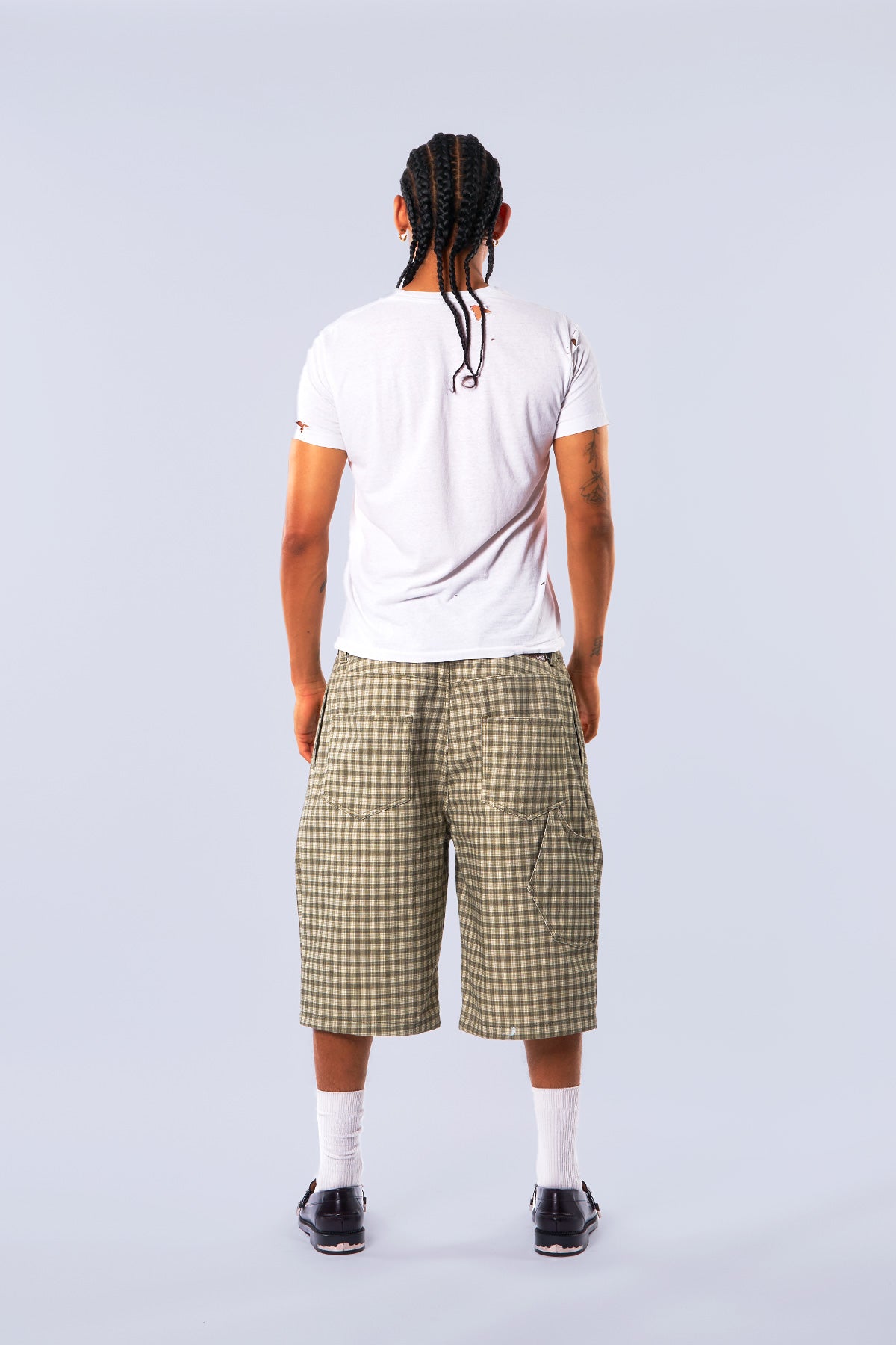 Canvas Green Pleated Plaid Denim Shorts